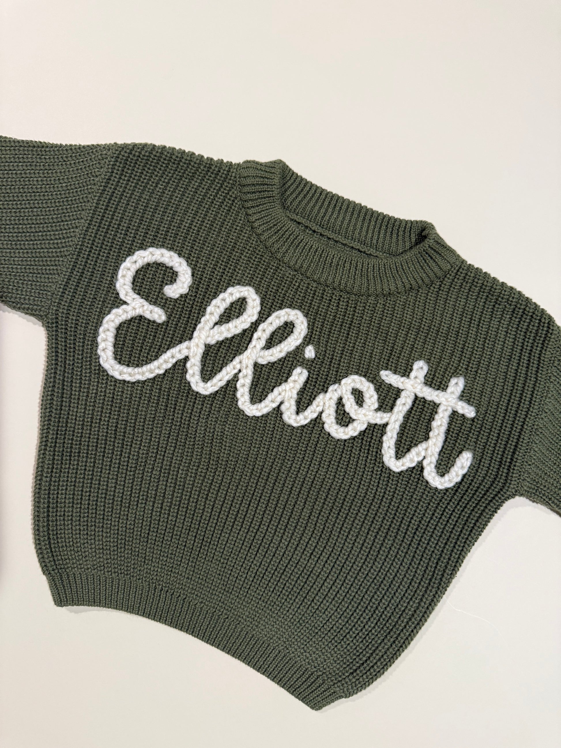 Please Note: Due to each sweater being made to order and not stocked in advance, current turnaround time for Chunky Name Sweaters is 3 weeks.